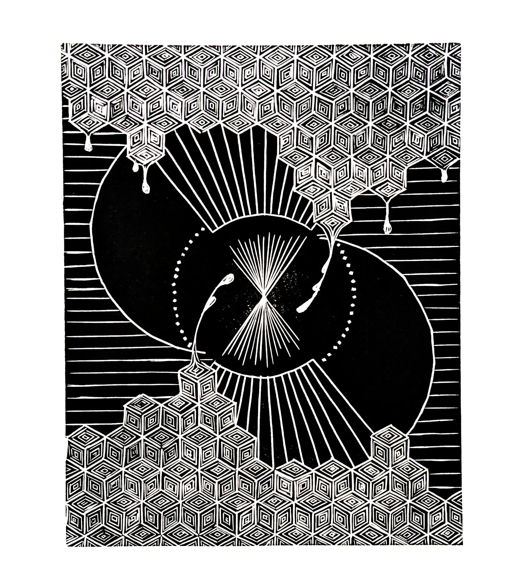 Her artistic style combines high energy colors with abstract geometric patterns influenced by the earth sciences and existentialism. She has completed several residencies, a solo exhibition, and has participated in multiple juried exhibits.