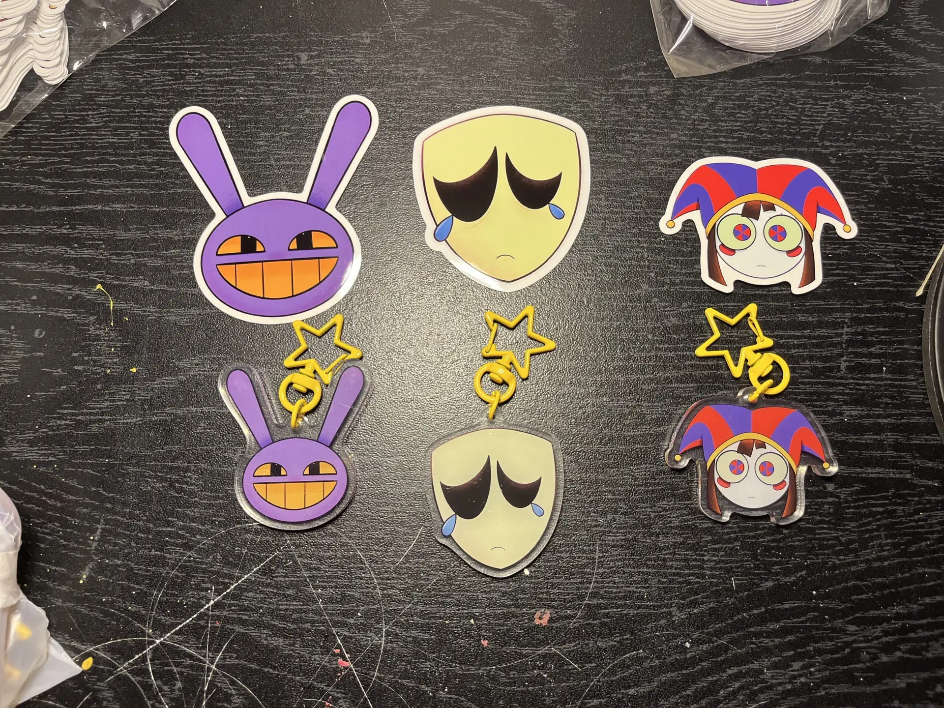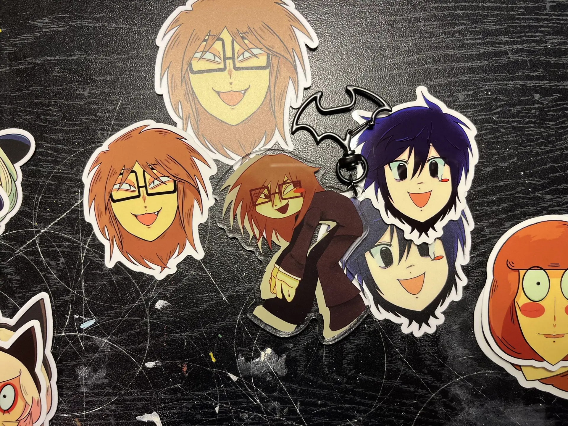 I typically stick to fan art works in the form of stickers and keychains but I do also do prints and oc works, my current stock is somewhat limited but my goal is to branch out into as many different fandoms as I can with as much merch as possible!
